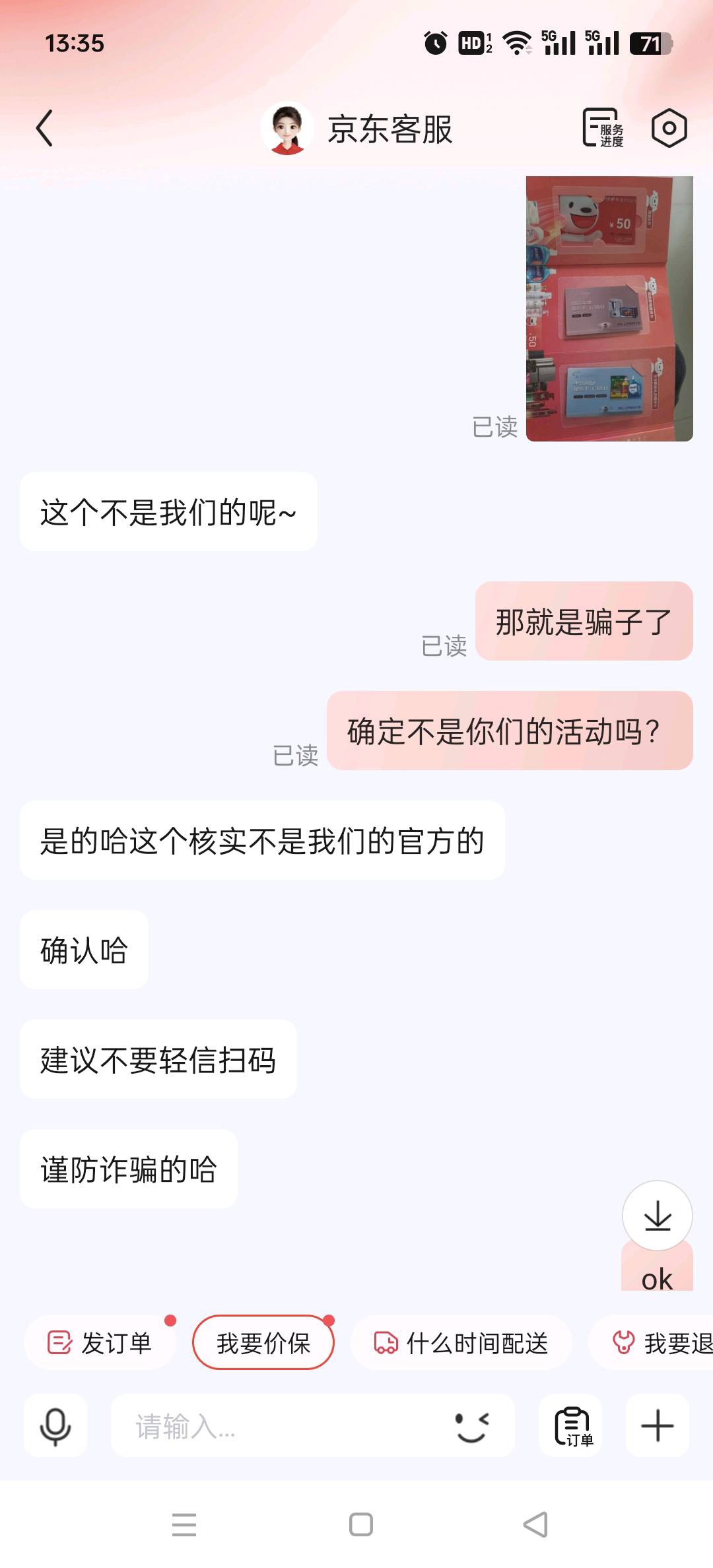 新型诈骗各位别信,扫码后就会一步一步掉入陷阱。问过京东客服,他们没有活动。
